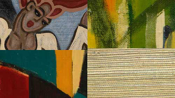 Alle Gemälde haben einen pastosen Farbauftrag (rechts oben und links unten Bilddetail Ausschnitte) mit mittelstarker Plastiztät.