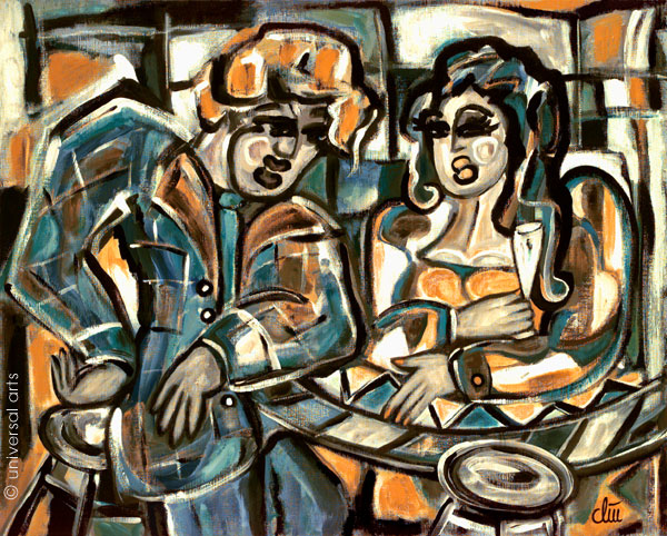 Der Firnis besteht aus einer mehrschichtigen Antiklackierung, wodurch ein Ölgemälde ähnlicher Eindruck entsteht. - Pastoser Farbauftrag.