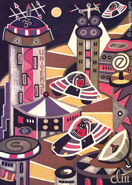 Am Ende des Jahres 2000, sozusagen am Nullpunkt des nächsten Jahrtausends, stellt sich die Frage " wird sich nun alles verändern oder bleibt es beim Alten ?" Nun letzteres mit Sicherheit nicht, denn viele sind schon dem Futurismus verfallen. Die Vision des omnipotenten Computers beziehungsweise Roboters, der dem Menschen das Leben erleichtert ist schon spurenweise in die Tat umgesetzt.... - "Futurism" - 10 Gemälde von Jacqueline Ditt. Kurze Ausflüge in die reale Welt sind systembedingt sehen Sie hierzu die Animation Leaving the Datahighway..... Pictures of the future and modern presents. From "Cyberdog" and "Blue Future Blend" to "Universe City" impressions of futurism. - "Futurism" - 10 paintings by Jacqueline Ditt Werksübersicht Alle Gemälde sind nicht nur als Originale sondern auch als Poster bzw. Kunstdruck (4.-/ 8.-/ 16.-/ 22.- Euro) oder Kunstpostkarte (3.- Euro) erhältlich (einfach Werkstitel im Bestellformular eintragen - dort finden Sie auch die verschiedenen Formate). - OG = Original Gemälde - KD = Kunstdruck - PO = Poster - KP = Kunstpostkarte Hier finden Sie Informationen zu Grasgewebemalgrund - Maltechnik und Rahmung.