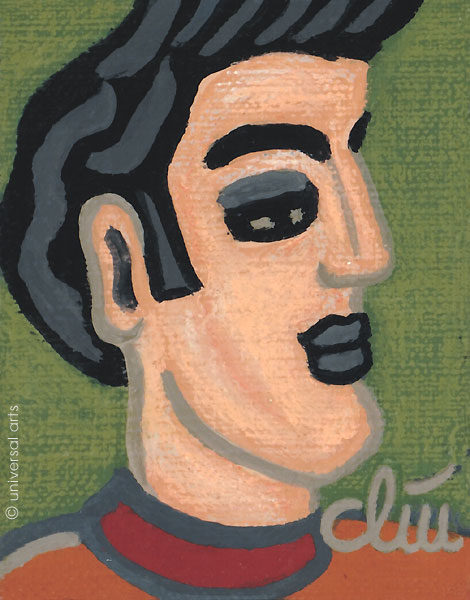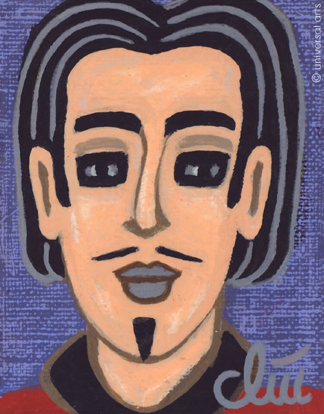 Der Reiz der Miniaturen liegt in der starken Begrenzung des Formates - auf kleinem Raum mit wenigen Strichen Inhalte zu vermitteln, meist entstehen sie parallel zu anderen Werken. The fascination of painting miniatures is the limited space for artistic impression. So you have to act with a few but valid brushstrokes. Werksübersicht Miniaturen sind nicht nur als Originale sondern auch als Kunstpostkarte (Faltkarte 14 x 21 cm) zum Preis von 3.00 EURO erhältlich (einfach Werkstitel im Bestellformular eintragen). Hier finden Sie Infromationen zu Grasgewebemalgrund und Maltechnik - Bitte beachten: Miniaturgemälde sind auf 10 mm bzw. besonders kleine auf 6 mm Sperrholz (schwarz gestrichen mit Aufhänger ) aufgezogen und nur ohne Rahmung erhältlich. Miniaturen der Ausstellung "Personality"