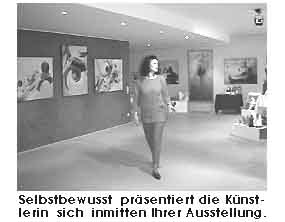 Ebenfalls bei Antaris zu sehen waren abstrakte Arbeiten der Künstlerin, hier zeigt sich Renée Rauchalles von einer ganz anderen Seite. Schwungvoll dynamische Kompositionen zeigen rhytmische Bewegungsabläufe in vorwiegend hellen, freundlichen Rot-, Grün-, und Gelbtönen. Sie sind das Gegenstück zu ihren phantastisch-realistischen Bildern, denn hier geht es um die Harmonie und den Fluss der sich in inneren eines gesunden Körpers, auf der feinstofflichen Ebene befindet. Diese Balance gilt es auch auf unserem Planeten wieder herzustellen. Der Untertitel der Ausstellung heisst " Von der Dunkelheit zum Licht" dies zeigt, die trotz allen Elends in der Welt, hoffnungsvolle und versöhnliche Haltung der Künstlerin. Die Bilder wandern nun wieder an ihren angestammten Platz zurück und sind zu den regulären Öffnungszeiten (siehe News) in der ZEITfürKUNST-Galerie in Haidhausen zu sehen. mehr zu Renée Rauchalles siehe auch... | "Der blutende Planet"München 20. 5. 2000 "Der blutende Planet" dürfte vielen Kunstfreunden schon ein Begriff sein. Es handelt sich um den zeitkritischen Bilderzyklus der Münchner Malerin Renée Rauchalles, der drei Wochen lang in der Schwabinger Galerie Antaris zu sehen war. Die Austellung wurde bereits an verschiedenen Schauplätzen in und um München gezeigt dies ist wichtig, denn die künstlerische Message soll möglichst viele Menschen erreichen. Die phantastisch-realistischen Bilder sind keine Schonkost für den Betrachter, so konfrontiert die Malerin mit Hunger und Not der Menschen und vielen Katastrophen unserer Zeit. In dramatisch surreales Licht gesetzt und mit kräftiger Farbgebung erhalten die Werke eine durchdringende Stimmung, die zum Nachdenken anregt. ![]() © universal arts - Verwendung nur im Rahmen unseres Lizenzmodells Photos: universal arts |