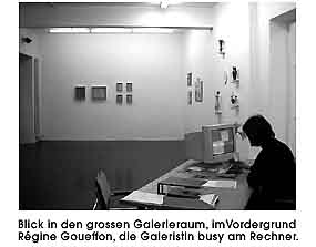 "Open End"München den 8. 12. 1999 Im, für Münchner Verhältnisse an kultuellen Einrichtungen reich gesegnenten Gärtnerplatzviertel, schickt sich seit Anfang ´99 ein ehrgeiziges Galerieprojekt an, eine Anlaufadresse für zeitgenössische, bildende Kunst zu werden. Die Galerie ISART präsentiert mit der Gruppenausstellung "open end" zum Abschluss des wirklich regen Ausstellungsjahres einen grossen Querschnitt durch ihr Programm. Stolze 13 Künstler zählt die Liste, 10 davon werden bisher zum festen Stamm der Galerie gezählt. Edith Oellers, Iris Häussler, Peter Vogt, Berthold Reiß, Heribert Heindl, Daniel Kojo Schrade, Alexandra G. Hendrikoff, Haralampi G. Oroschakoff, Manuel Terra Eitner, Jörg Eberhard sowie Anne Rößner, Therese Hefele und Markus van Bracht.