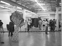"Social Fabric"Der Stoff aus dem die Träume sind, diesmal wörtlich das Textil aus dem die Kunstwerke sind, bildete den Aufhänger für eine Ausstellung in der stadtbekannten Kunst- und Künstlerinstitution Lothringer Dreizehn. Zehn Künstler aus New York, Chicago, Los Angeles, München und Karlsruhe beteiligten sich an einer Gruppenausstellung zum Thema social fabric. Die Spanne der Exponate reichte von der Installation über Video und Gemälde bis zur Skulptur bzw. zum Arrangement mit alltäglichen Gebrauchsgegenständen. Als Material wurden hauptsächlich Textilien wie Teppiche, Stoffe, Taschen und Kleidungsstücke eingesetzt die als Metapher für die Gemeinsamkeiten und Unterschiede bzw. Konflikte der verschiedenen sozialen und ethnischen Bevölkerungsgruppen in einer, zunehmend globalisierten Welt dienen sollten. Ob in der Lothringerstasse weiterhin Kunstevents stattfinden, oder ob die Institution bald selbst zur bedrohten "Art" wird, muss im Spannungsfeld zwischen Stadtsanierung und schrumpfenden öffentlichen Zuwendungen die Zukunft weisen. |