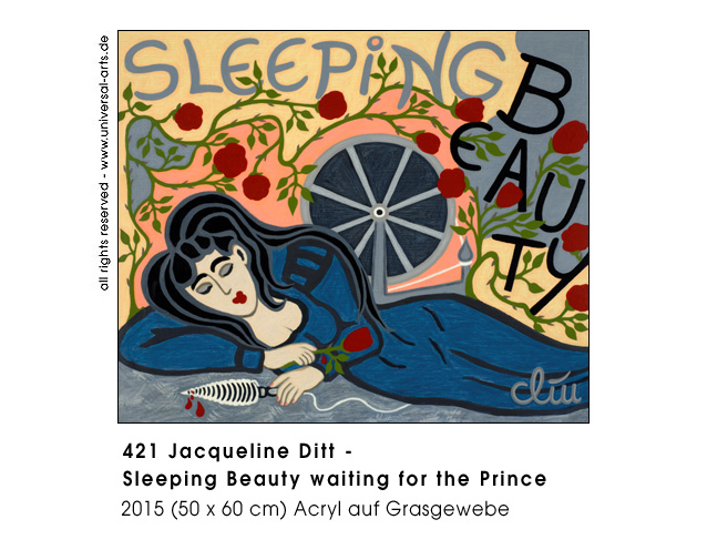 rich, often kings if they are elder, or heroes and brave knights. All this "Fairy stuff" is undoubtedly entertaining and sometimes even instructive, so the artist doesn't want to change them in substance but they are what they are very popular "old stories" and in relation to tradition in stereotypes we should rather turn to emancipation. - Exhibition 2015 "Fairy Tales - Reloaded" - 7 paintings and 2 graphics by Jacqueline Ditt