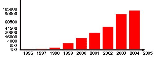 Diese Graphik zeigt die jährliche Anzahl von Besuchern von 1996 bis 2004.
